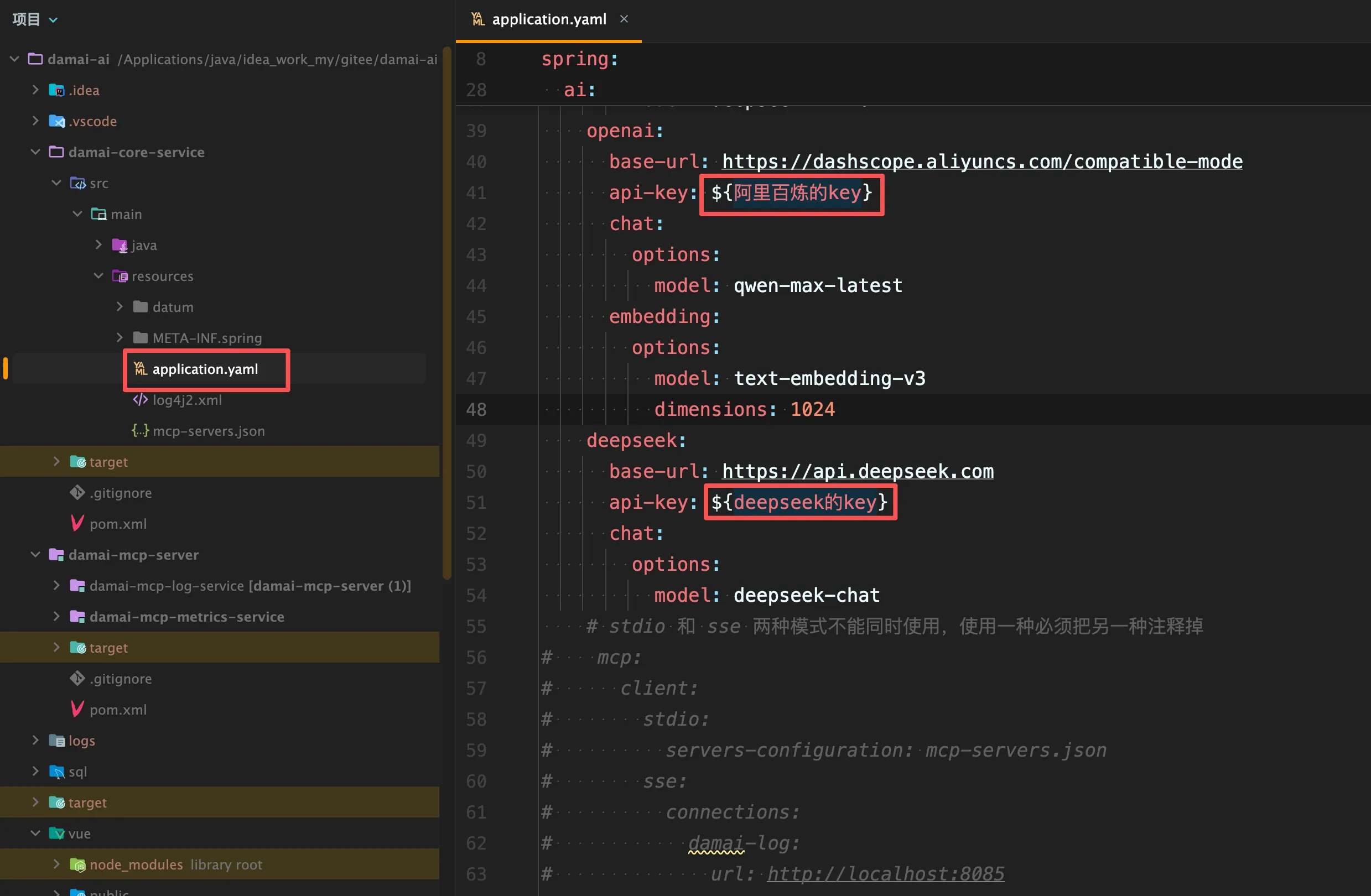配置OpenAI和DeepSeek的秘钥key