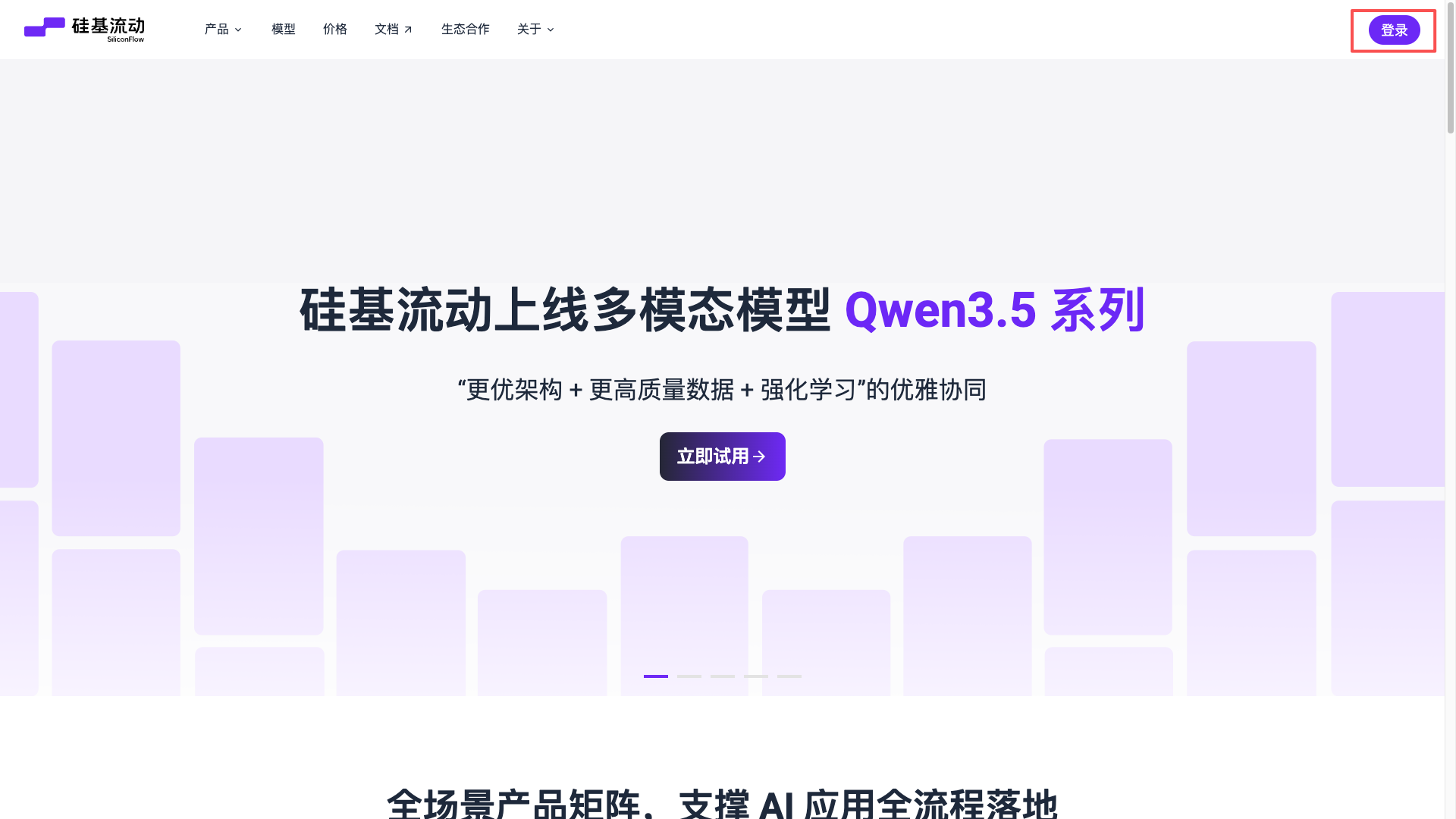 进入硅基流动官网地址:https://siliconflow.cn,然后点击右上角登录