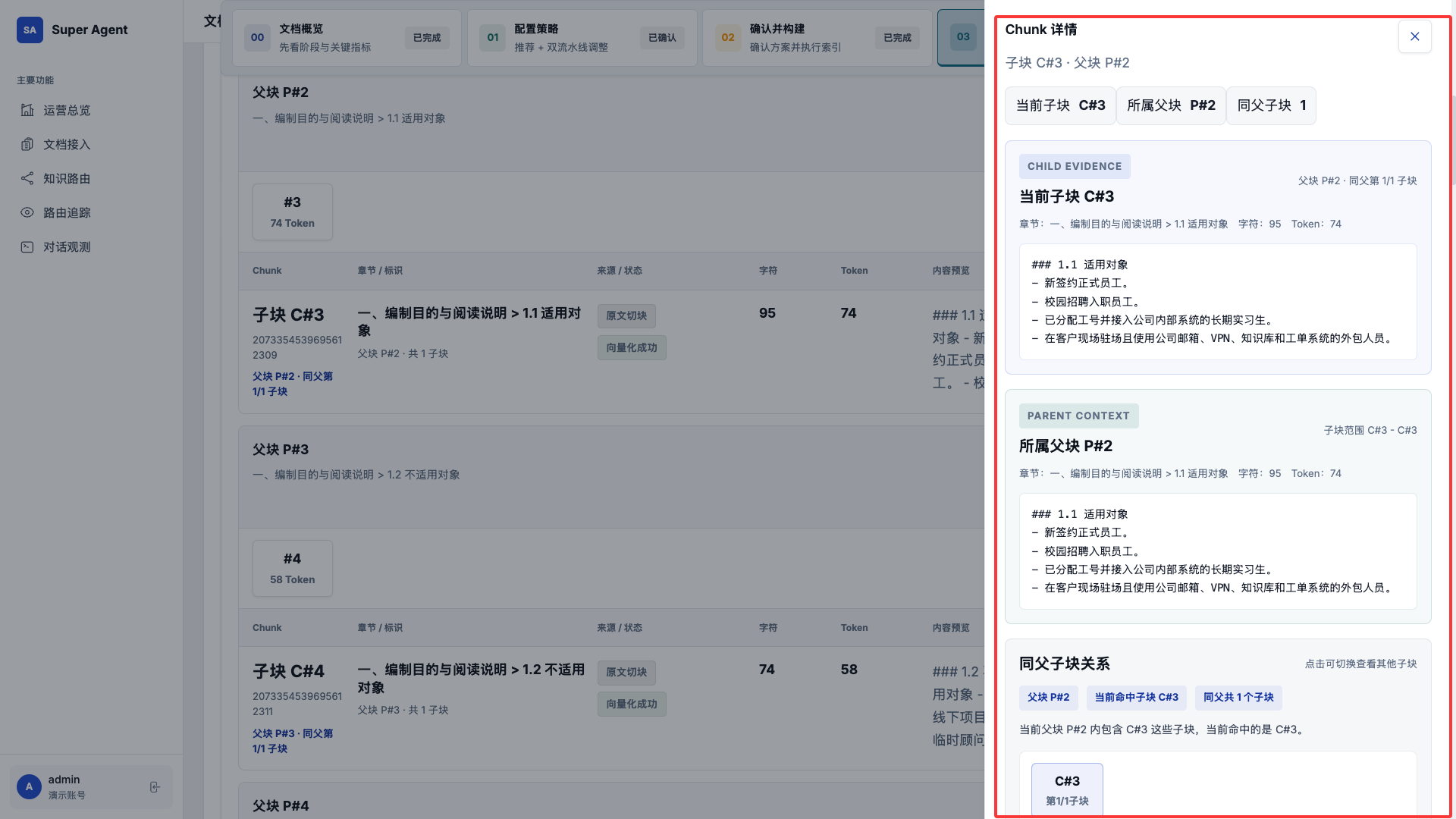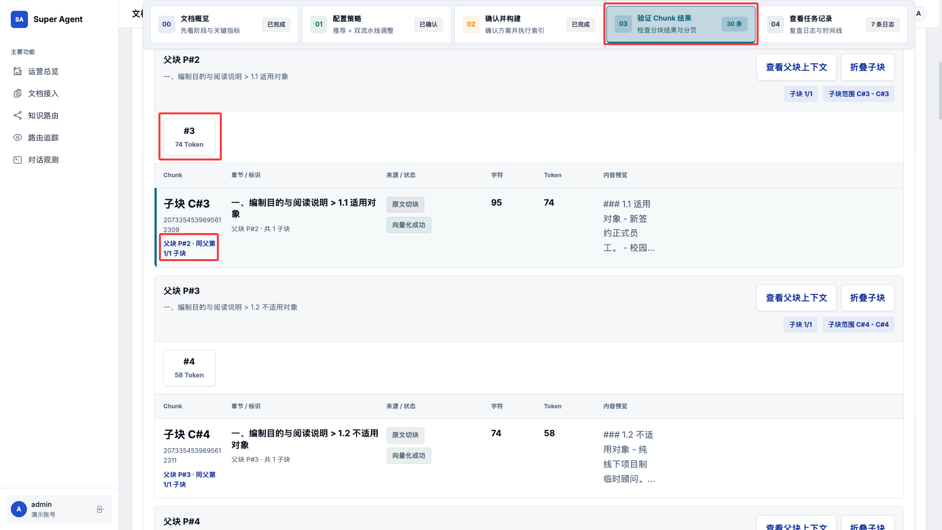 7.1 在验证 Chunk 结果中,可以点击对应的父块和子块,查看切分后的内容