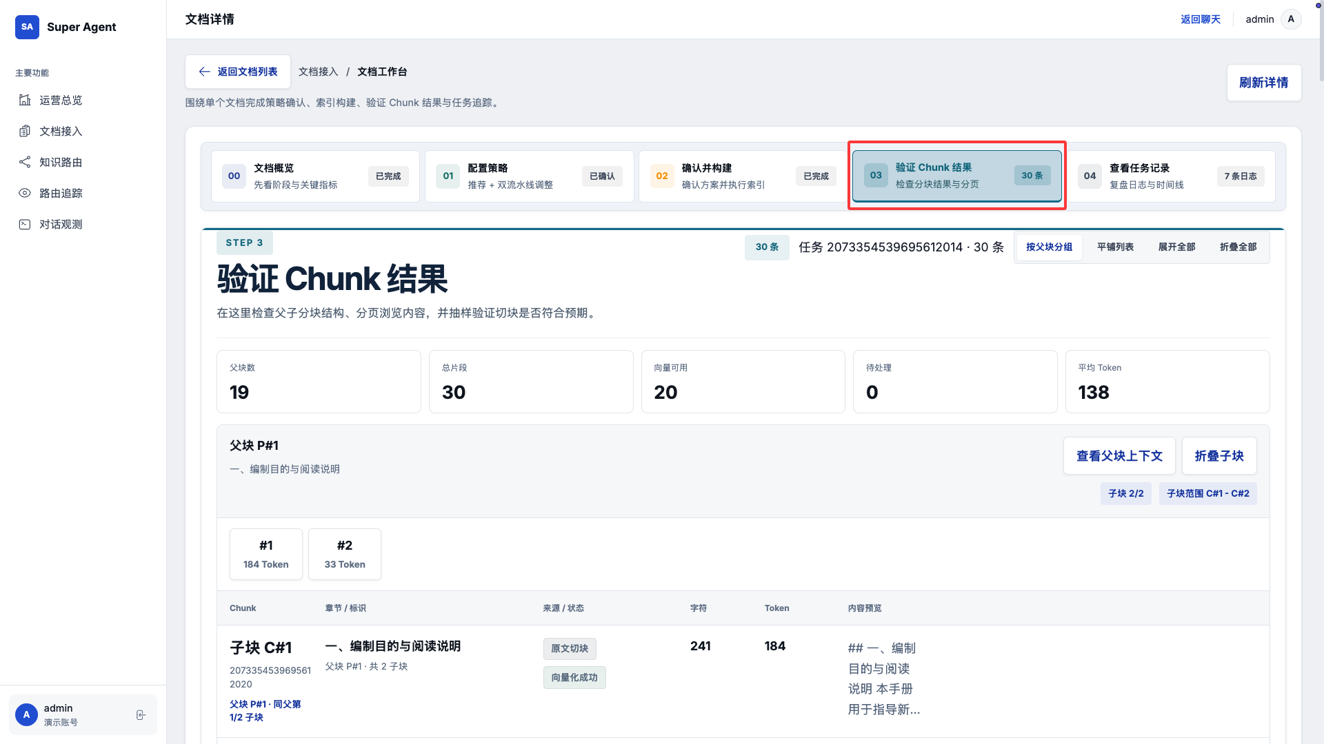 7. 构建完后,点击 验证 Chunk 结果,查看切分后的内容