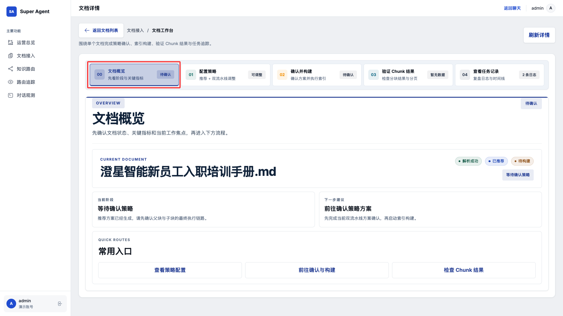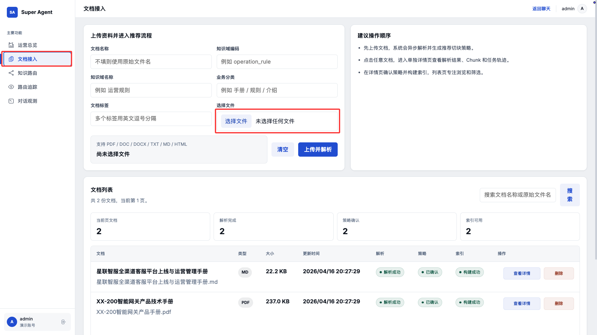 2. 点击 文档接入,选择文件进行上传