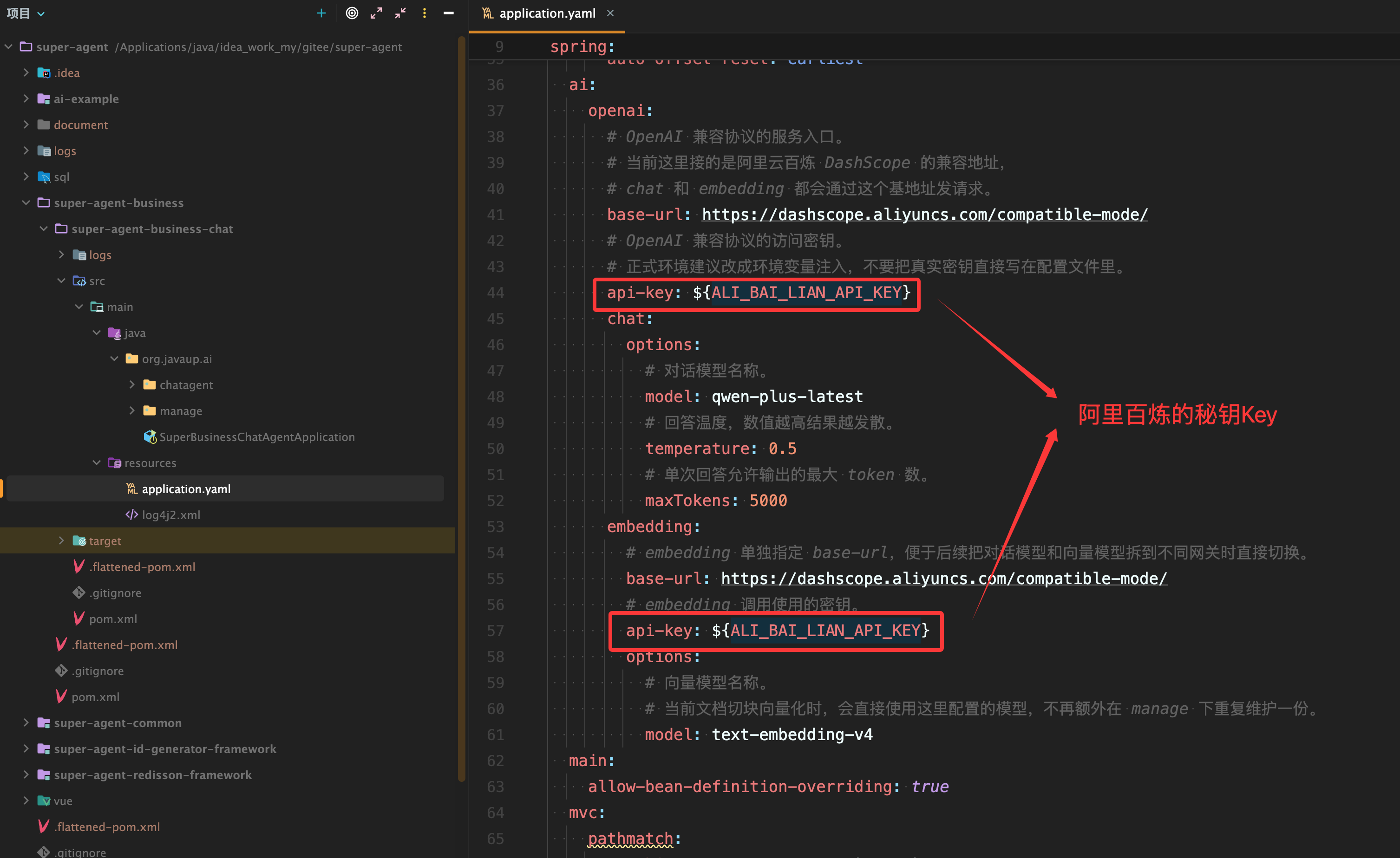 4.2 阿里百炼模型的秘钥 Key 配置