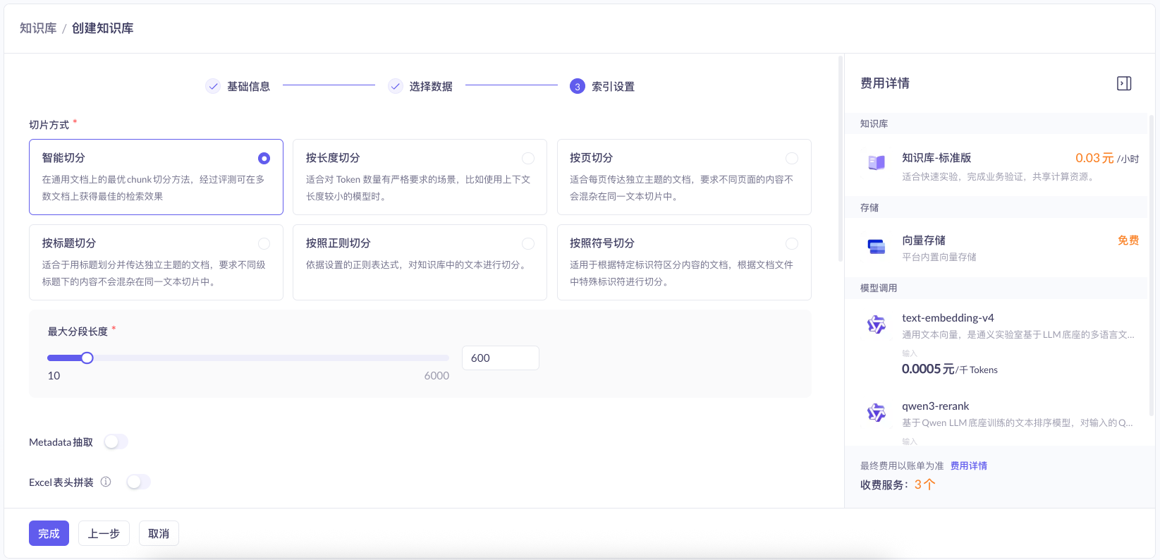 百炼支持6种切分方式: