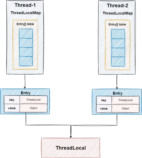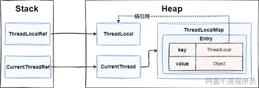 - ThreadLocalMap 中的键是对 ThreadLocal 实例的弱引用。当没有强引用指向 ThreadLocal 实例时,垃圾回收器会回收这个 ThreadLocal 实例,导致 ThreadLocalMap 中的键变为null。