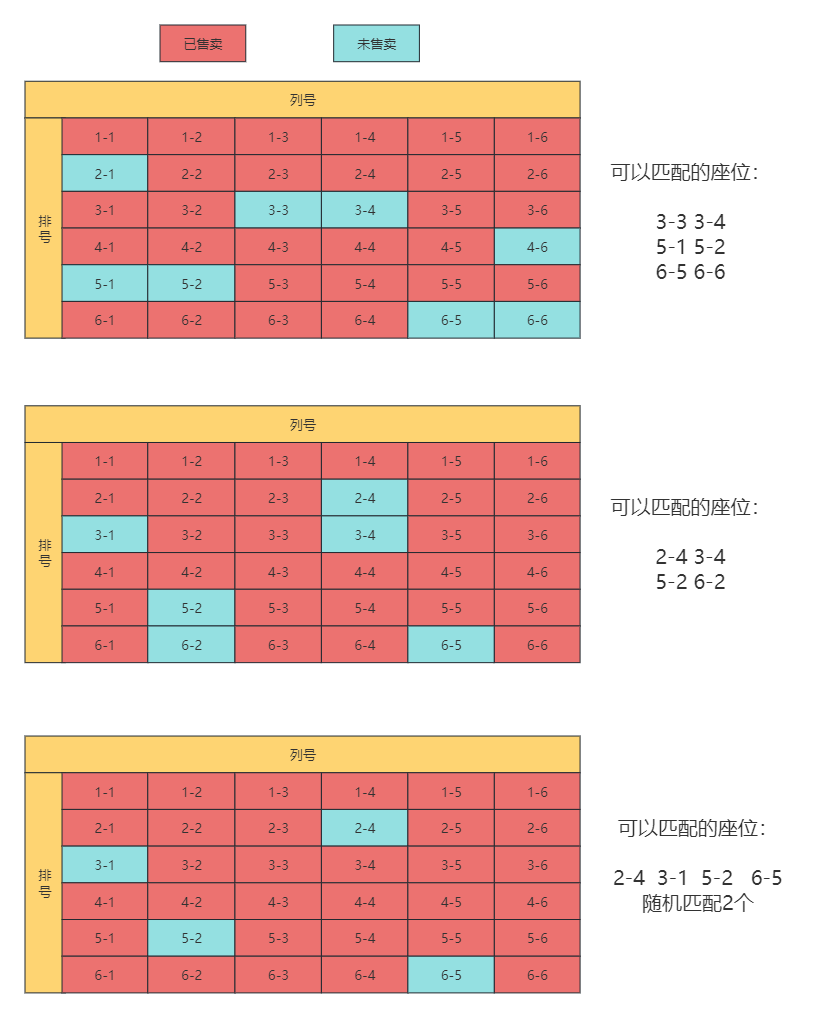 • 从所属票档的第一排中查找是否有相邻的两个位置