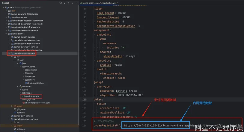 当在内网穿透工具配置好地址后,我们就要在项目中配置了,这里将聚合服务和微服务都进行说明