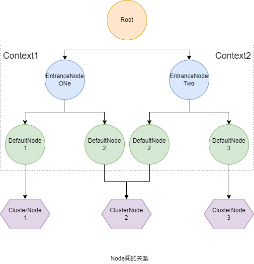 入口节点,特殊的链路节点,对应某个 Context 入口的所有调用数据。Constants.ROOT 节点也是入口节点。也就是一个Context会有一个入口节点,用于统计当前Context的总体流量数据DefaultNode