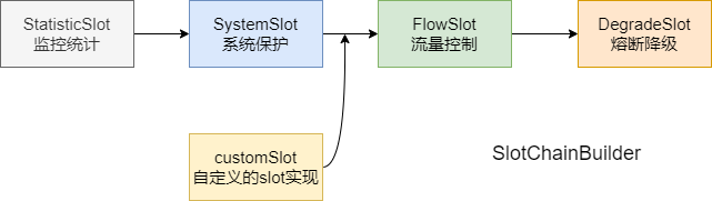 为 SPI 接口进行扩展,使得 SlotChain 具备了扩展能力。用户可以自定义Slot并编排Slot 间的顺序。