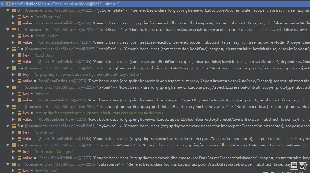 - BeanDefinitionHolder包含AbstractBeanDefinition 标签元素tx:advice的bean