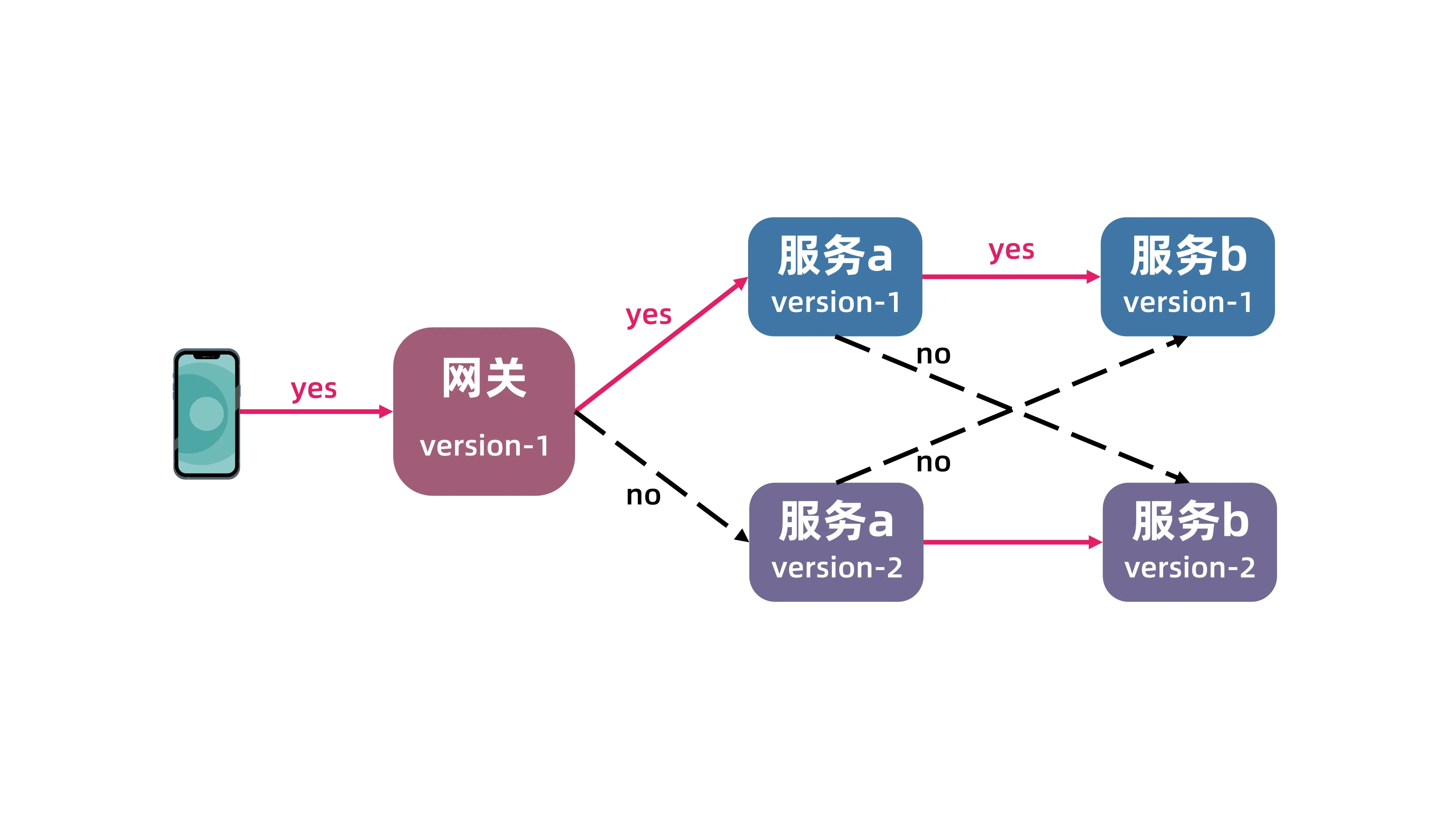 - 版本功能调用 version-1 版本的a服务,调用 version-2 版本的b服务