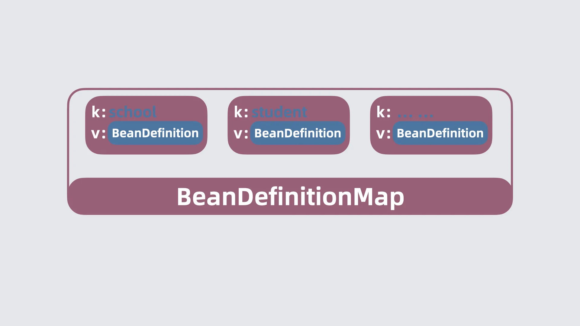 要先知道一个概念,Spring在创建对象时,不是直接就把对象创建出来,而是先获取创建对象的元信息(类名、构造方法、属性值等)包装成 BeanDefinition 结构,再放入一个 beanDefinition 类型的Map结构中,等把所有对象元信息都放入此map后,接着再遍历这个map,把真正的对象创建出来。