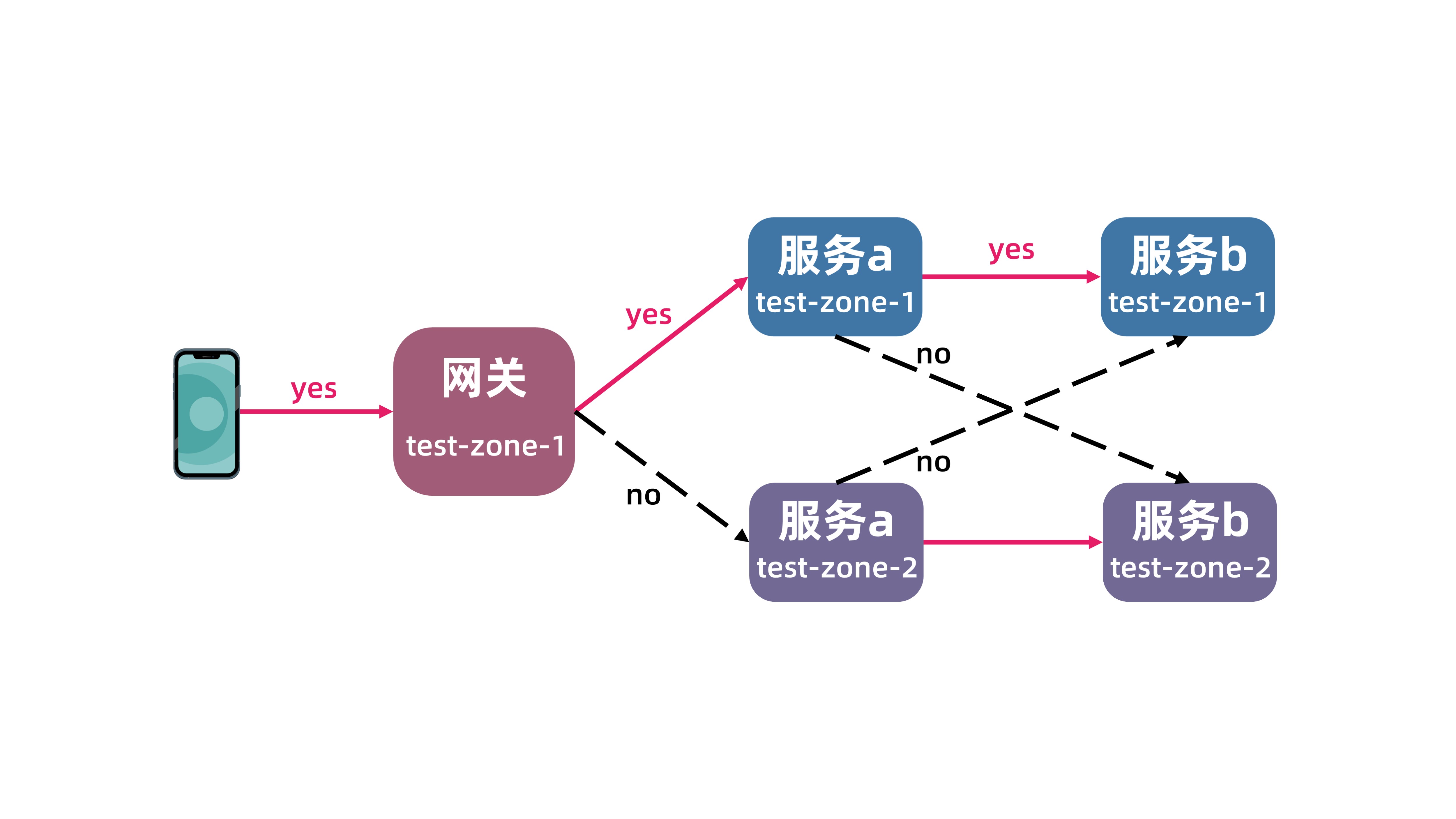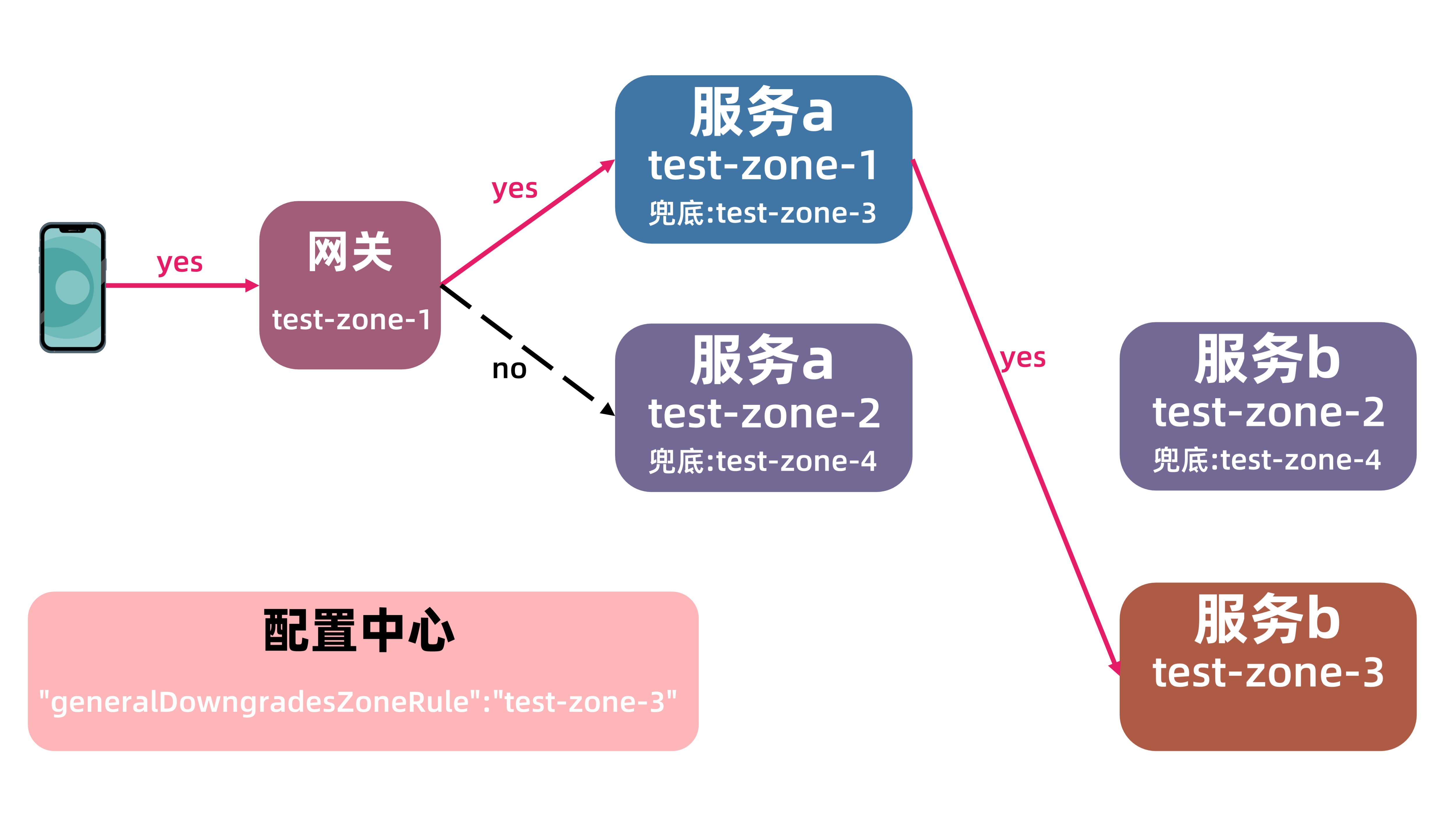 1. 兜底策略功能调用 test-zone-1 区域的a服务,调用 test-zone-2 区域的b服务