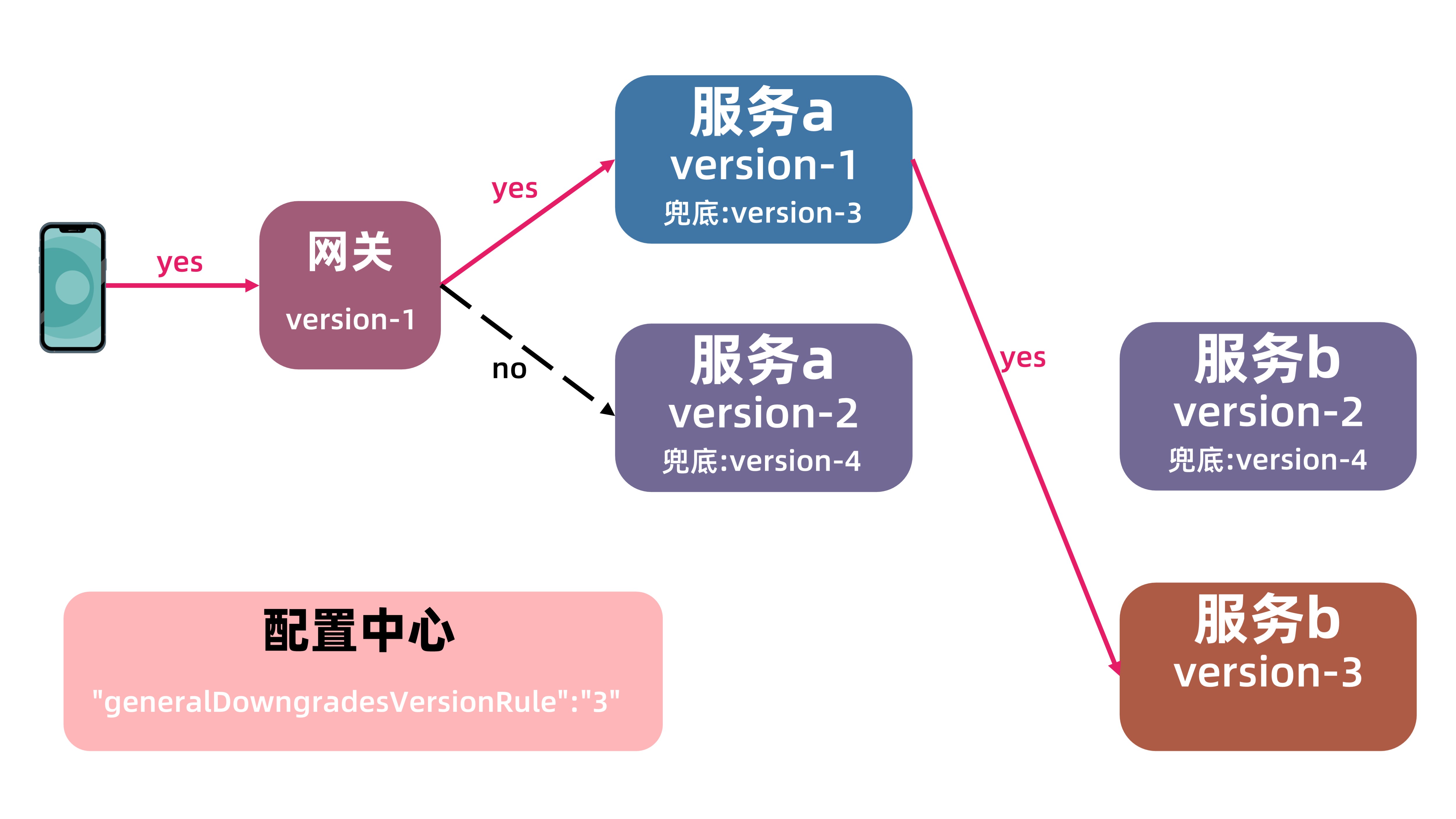 1. 兜底策略功能调用 version-3 版本的a服务,调用 version-4 版本的b服务