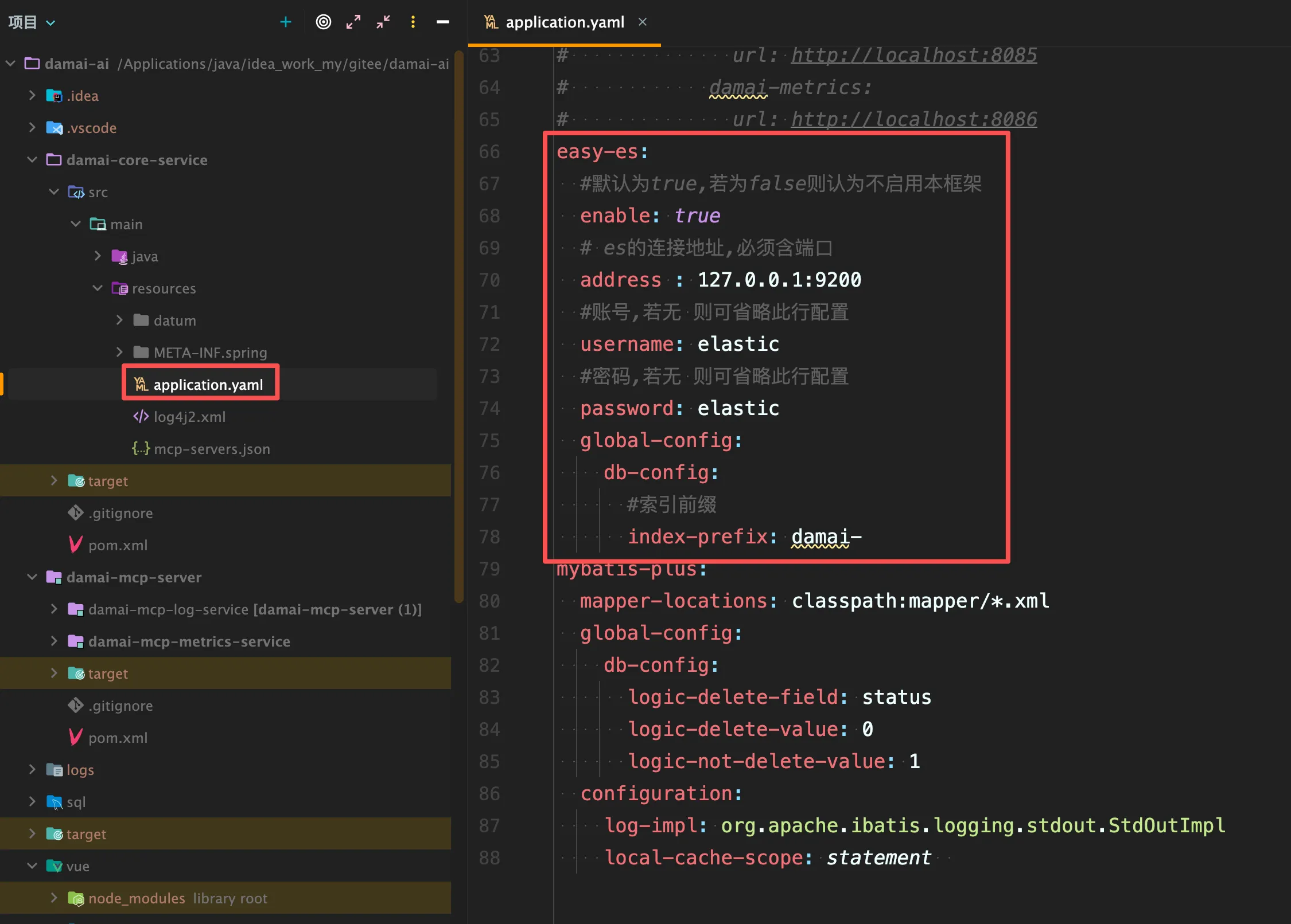 索引前缀这个参数的值,要和大麦项目中配置参数 prefix.distinction.name 的值相同,因为大麦ai项目从ElasticSearch 中查询的数据是大麦项目放进去的