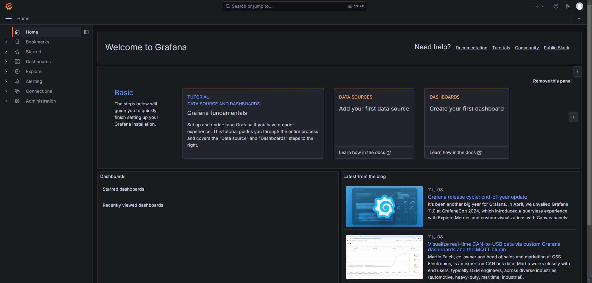 docker logs -f grafana