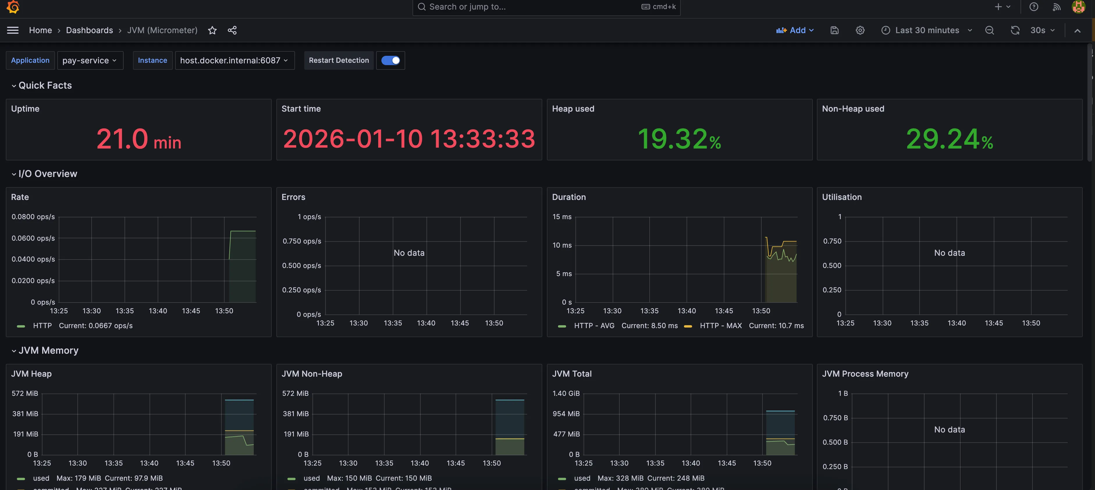 在 Grafana Dashboard 中应该能看到服务的实时监控数据