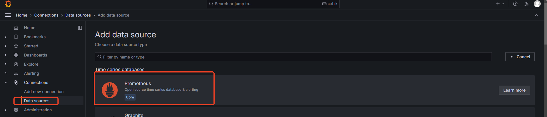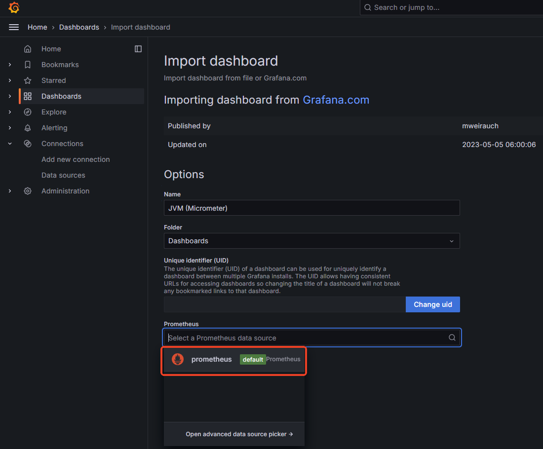 - 选择 Prometheus 数据源