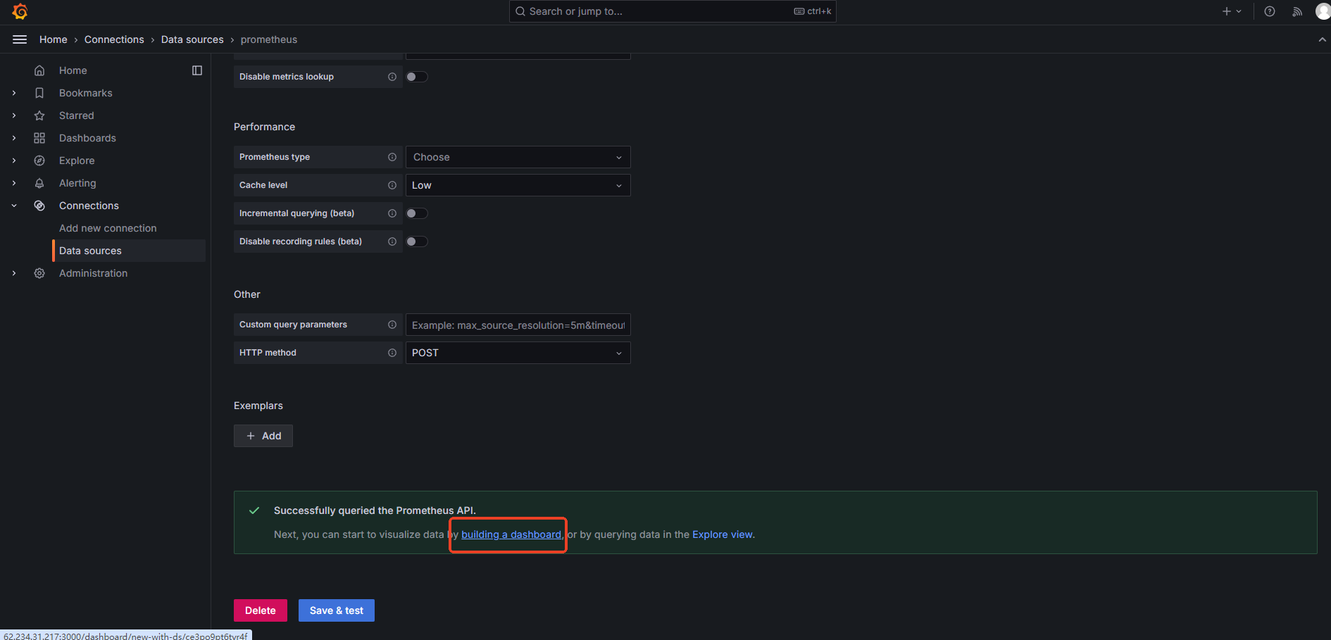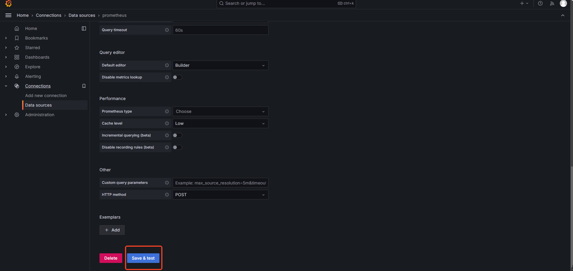问题 2:Grafana 连接 Prometheus 失败