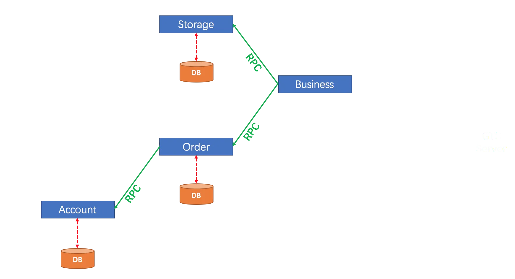 用户购买商品的业务逻辑。整个业务逻辑由 3 个微服务提供支持: