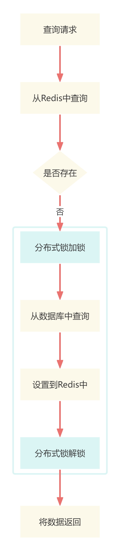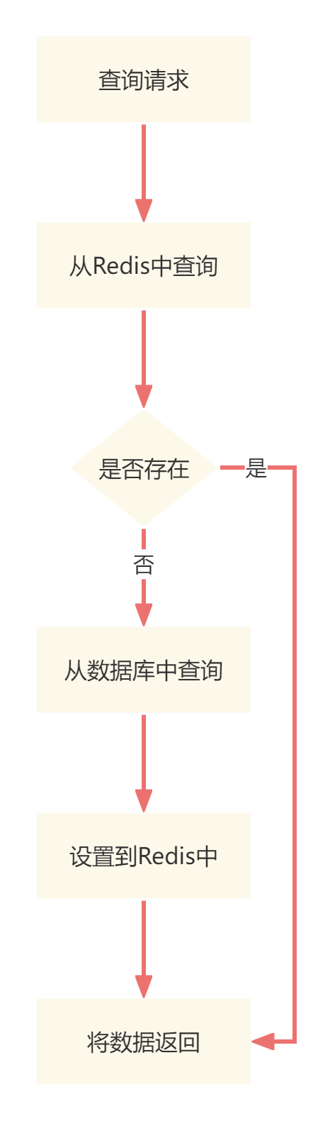 首先从redis中查看是否存在,如果不存在则从数据库中查询,接着将查询出的数据放在redis中,最后将数据返回